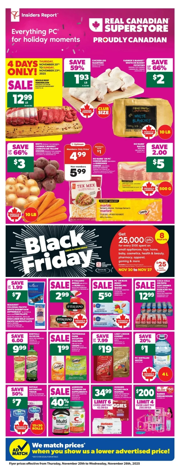 Craving for the best selection of food in town? Look no further. The Real Canadian Superstore offers unbeatable offers on the freshest fruits and vegetables, frozen and fresh seafood and meats, an amazing selection of the finest cheese, dairy items, baked goods, freshly prepared meals and so much more every week.